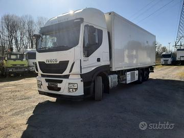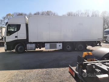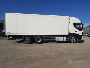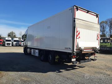 MOTRICE FRIGO IVECO 260AS42 ANNO 2016 KM. 590000 CAMBIO AUTOMATICO, INTARDER,FULL PNEUMATIC,TERZO ASSE STERZANTE SISTEMA ANTICOLLISIONE, CASSA FRIGO SCHMITZ DA M. 8 INTERNO ALTEZZA INTERNA M. 2.40, FRIGORIFERO TERMOKING UT-1200, SPONDA CARICATRICE B.A.R.