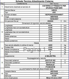 Chilometraggio: 200000 Condizioni: usato Immatricolazione: 06/2007 Tipologia: Autotelaio cabinato Carburante: Diesel Tipo di cambio: Manuale VENDITA IVECO DAILY 65 C 17 AUTOSPURGO KM 200.000 ANNO 2007 PATENTE C LUNGHEZZA 6.338 M LARGHEZZA 2.180 M PORTATA 2100 KG ALLESTIMENTO: Mecsud Autospurgo tutto acciaio inox con pompa di vuoto JUROP 82D POMPA TRAVASO JUROP VL 14 travaso e naspo a fondo post. POMPA ACQUA PRATISSOLI KF36 Con cisterna 2260 lt di sporco e due sacche di acqua pulita di 2000 lt -da fare la triennale- IMPORT/EXPORT FURGONI E CAMION IVECO; MERCEDES; FIAT; RENAULT; OPEL; MAN; DAF; VOLVO; FORD GRUPPO BARONE SRL I nostri contatti: Noleggio, amministrazione e assistenza: Linea1. Responsabili Vendite Rag.Nunzio Tedesco Michele Tedesco Contatti: , Rivenditore GRUPPO BARONE SRL