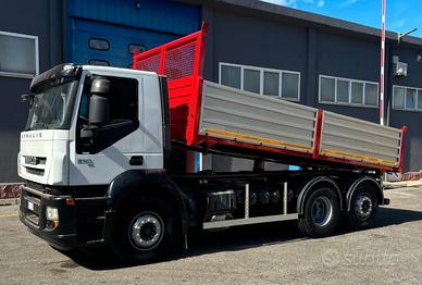 IVECO AD 260 S 310 cabina corta tetto basso, passo3.800, EURO 5, 310 Cv, anno di prima immatricolazione 2011, cambio ZF 16 M, aria condizionata, parasole,blocco differenziale, MOTORE NUOVO completo, allestito con cassone ribaltabile trilateralemisure 5.700 x 2.550 x H 800, sponde in alluminio TR 5 frazionate al centro,doppia apertura posteriore, eccellenti condizioni. Portata netta 157 Q.li