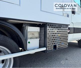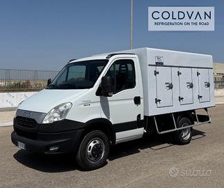 Iveco Daily 35 q.li, 35c15 motore 3.0cc 150cv, anno 2013, patente B, refrigerato a piastre eutettiche. Allestito con carrozzeria refrigerata Coldcar, 3+3 porte e portelloni posteriori per carico a pedane e certificazione ATP RRC valida fino al 08/2025 (rinnovabile in sede alla scadenza).