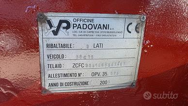 Cassone ribaltabile trilaterale Padovani idraulico dimensioni interne utili cm 314 x 212 con sponde in ferro altezza cm 45.