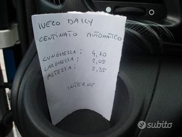 OTTIME CONDIZIONI GENERALI UNICO PROPRIETARIO IVECO DAILY 35 C 14 3000 140 CV EURO 6 HI MATIC CAMBIO AUTOMATICO ALIMENTAZIONE BENZINA/METANO PASSO 3750 CASSONE CON CENTINA E TELOME MECCANICAMENTE PERFETTO MISURE INTERNE CASSONE: LUNGHEZZA 4.10 METRI LARGHEZZA 2.05 METRI ALTEZZA 2.35 METRI PORTATA UTILE 600 KG