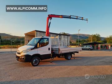 Iveco Daily 35c14, anno 2017, 140cv km 240.000, aria condizionata, vetri elettrici, cruise controll. Veicolo allestito con Gru Nuova Marca HC, modello HC43 con 4 sfili idraulici e 4 stabilizzatori. Cassone fisso misure 3.85 x 2.22.