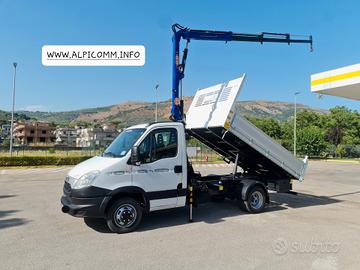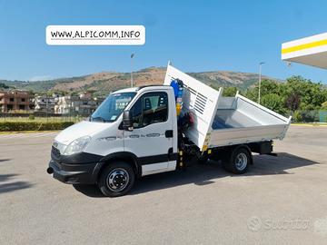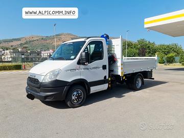 Iveco Daily 35c15, anno 2012, 3000cc, 150cv, vetri elettrici. Veicolo allestito con gru NUOVA marca PM, modello 2.8 con 3 sfili idraulici e ribaltabile NUOVO 3 lati con sponda posteriore a bandiera, misure 3.20 x 2.10.