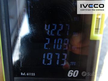 Vano di carico (L L A)4.220 x 2.100 x 2.000 mmVolume vano di carico17 m³Passo3.750 mmCarico utile900 kgPeso totale ammiss.3.500 kgCarichi mass. per asse2.100 kgSerbatoio70 lAdBlue20 lConsumo ed emissione (WLTP)