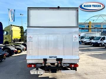 Allestito con cassa furgonata da misure interne mt 4.22 x mt 2.08 x mt 2.16 completo di sponda caricatrice idraulica da 750 kg.