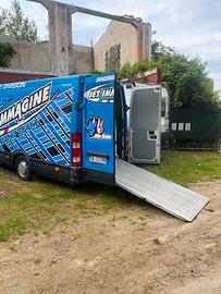 Furgone IVECO DAILY modello 35S14 GRANVOLUME, passo lungo, tetto alto, anno 2009 con 311.865 km., clima, autoradio, chiusura centralizzata, lunghezza interna 440 cm., attrezzato Officina mobile per motocross con banco lavoro e morsa, compressore, generatore, cassettiera con attrezzi completi, verricello elettrico, luci led interne, dotato anche di rampa pedana salita Quad/Moto in alluminio e acciaio, ottimo per Team, da rifare grafica.