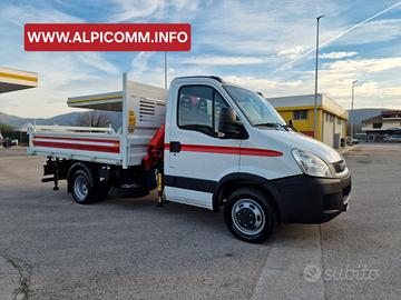Veicolo allestito con gru NUOVA marca HC, modello HC43 con 4 sfili idraulici e 4 stabilizzatori e Ribaltabile NUOVO 3 lati misure 3.20 x 2.10.