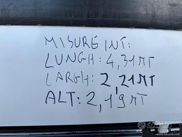 MISURE INTERNE : LUNGHEZZA 4.31 MT ALTEZZA 2.19 MT LARGHEZZA 2.21 MT