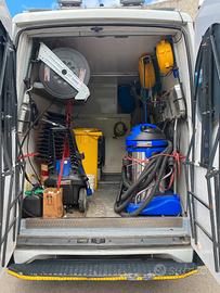 Il furgone è accessoriato (e si vende così completo) con gruppo elettrogeno, serbatoio acqua, idropulitrice, aspirasolidi e liquidi, compressore aria, ed altri accessori.
