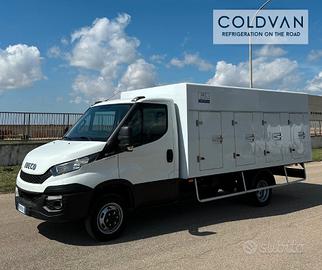 Iveco Daily 35c15, motore 2.3cc 150cvpatente B, refrigerato a piastre eutettiche. Anno 2016, allestito con carrozzeria refrigerata Cold Car, 4+4 porte e certificazione ATP RRC valida fino al 06/2030 (rinnovabile in sede alla scadenza).