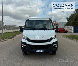 Iveco Daily 35c14, patente B, motore 2.3cc 140cv refrigerato a piastre eutettiche. Anno 2017, allestito con carrozzeria refrigerata Cold Car, 4+4 porte e certificazione ATP RRC valida fino al 06/2030 (rinnovabile in sede alla scadenza).