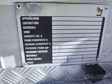 Chilometraggio: 460000 Condizioni: usato Immatricolazione: 03/2005 Tipologia: Autocarro - Autocisterna Carburante: Diesel Tipo di cambio: Manuale IVECO EUROCARGO 100E17 ANNO 2005, KM 460.000, CON DISCO, TRASPORTO CARBURANTE CISTERNA SACIM , LITRI 6240, 3 SCOMPARTI 1° SCOMPARTO 2.040 LT 2° SCOMPARTO 1.070 LT 3° SCOMPARTO 3.130 LT COMPLETA DI POMPA DI TRAVASO, AVVOLGITUBO E MISURATORE VOLUMETRICO CONTA LITRI, CON ADR E BARRATO ROSA. DISPONIBILE PER QUALSIASI PROVA PRESSO LA NOSTRA SEDE! Contatti: , Rivenditore SQUITIERI COSIMO SAS