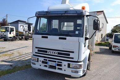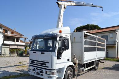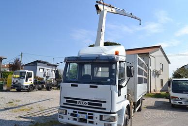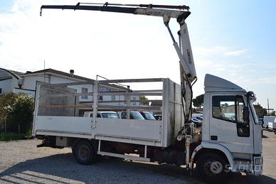 IVECO EUROCARGO 120E18 , CON GRU BONFIGLIOLI Z 10000 LUNGHEZZA MASSIMA BRACCIO 12 METRI CON 2 SFILI IDRAULICI E 2 SFILI MANUALI E CASSONE FISSO LUNGHEZZA 587 X 248 CON PEDANA IDRAULICA CON 350000 CHILOMETRI
