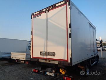 rif.35448 , Iveco eurocargo 140E28/P , cc 6.728 da 280cv., ecologia euro6 , 6 cilindri .Passo 3.690mm, cambio manuale , sosp. pneumatiche . Cella isotermica con paratia interna mobile e possibilità di trasporto a doppia temperatura .Vano di carico totale interno utile 5.28x2,25 h 2,34m. gruppo frigo carrier xarios 600 , ATP classe frc scad. 06/2027