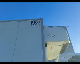 furgonatura isotermica con A.T.P. classe F.R.C. Marca KIESLING valida fino 08/2028 , , con gruppo frigo Carrier Supra 1150 mt con termo-registratore, con misure utili interne di mm 6300x2480x2380,fondo in granigliato chicco di riso ,doppio evaporatore anteriore e posteriore con paratie divisorie .battipallets da 300mm sui bordi+ asta cremagliera e asta forata per agganci rapidi