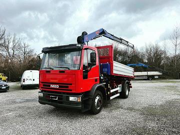 Iveco Eurocargo 150 in ottime condizioni , cambio 9 marce, bloccaggio differenziale, allestito con ribaltabile trilaterale con sponde Tr5 e gru PM 8023 a 3 sfili con ben 2 attivazioni in punta per applicazione pinza , rotore, o altro accessorio. Portata utile 76 q.li. Per info tel . No mail grazie.