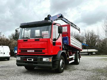 Iveco Eurocargo 150 in ottime condizioni , cambio 9 marce, bloccaggio differenziale, allestito con ribaltabile trilaterale con sponde Tr5 e gru PM 8023 a 3 sfili con ben 2 attivazioni in punta per applicazione pinza , rotore, o altro accessorio. Portata utile 76 q.li. Per info tel . No mail grazie.