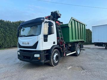 TITOLO: IVECO EUROCARGO 160E25K SCARRABILE BALESTRATO ANTERIORE E BALESTRATO POSTERIORE CON GRU A L DIETRO CABINA E POLIPO 6 PALE