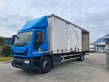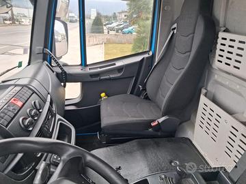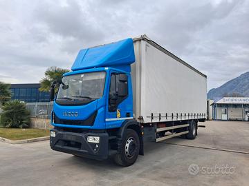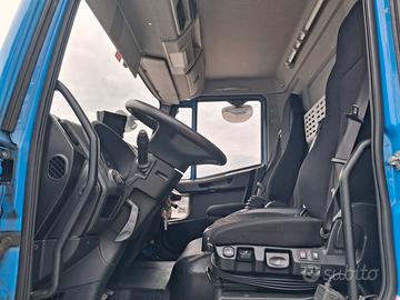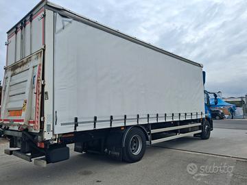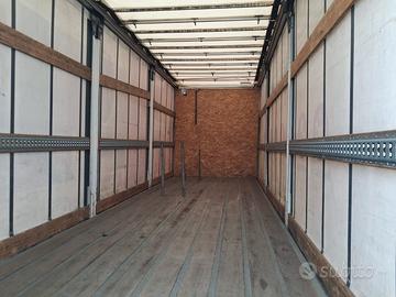 Autocarro cassone centinato con sponda posteriore caricatrice.