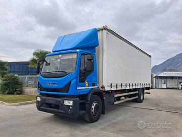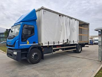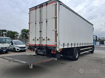 Autocarro cassone centinato con sponda posteriore caricatrice.