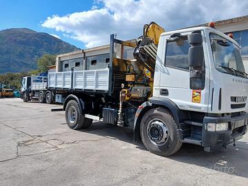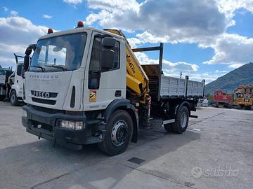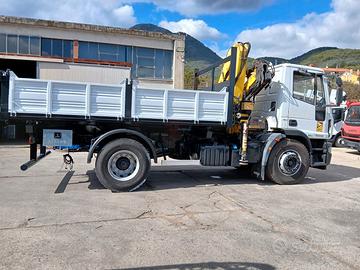 AUTOCARRO IVECO EUROCARGO 180E25 (COD.INT. PM1848) DESCRIZIONE - autocarro in ottime condizioni generali, in allestimento con ribaltabile trilaterale nuovo metri 4,30 con gru marca Hyva modello 911 S3 con radiocomando, attivazione in punta e rotore, 2 assi, 4x2, cambio manuale, Euro 5, sospensioni a balestra, bloccaggio differenziale, radio, A/C POSSIBILITA' DI FINANZIAMENTO Motore - IVECO Km - 404.000 Anno - 2012 Portata a pieno carico - 180 q.li Potenza netta - 250 cv - 185 kW Passo - 3690 mm Cilindrata - 5880 cm³ Prezzo : Euro 55.000,00 + IVA