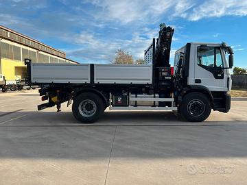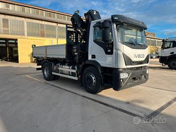 Nuovo Iveco Eurocargo 180E32K,passo 3690mm, EURO 6 e, 3 posti in cabina, colore bianco, pneumatici 315/80R22.5,cambio manuale 9 marce, aria condizionata, bloccaggio differenziale,predisposto per rimorchio. Nuova gru Hiab 162 ES4, sbraccio orizzontale 12,4 mtcon 1000 Kg, doppia biella sulle articolazioni, stabilizzatori anteriori adestensione idraulica, stabilizzatori posteriori fissi con discesa idraulica,radiocomando CobiDrive 4 con display a colori, controllo delle oscillazioniverticali LSSV, apertura e chiusura semiautomatica gru SAF, stabilizzatori grugirevoli assistiti con molla a gas. Ribaltabile trilaterale misure 4200mm x2550mm, sponde in TR5 bombato H 600mm, sponda posteriore apertura a bandiera, 1cassetto acciaio inox. Portata utile 7050 Kg