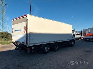 Anno 2018, km 170.000, motore euro 6, pneumatico integrale, 3 asse sterzante ed alzante, passo 4455, allestito con furgone trasporto bibite e sponda posteriore a battente. Gancio Traino