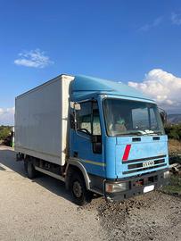 Vendo Iveco EuroCargo 65E12 furgonato. Ottimo come donatore di parti o per chi vuole recuperare allestimento e sponda da montare su altro mezzo. La sponda idraulica è operativa e il box è solido.