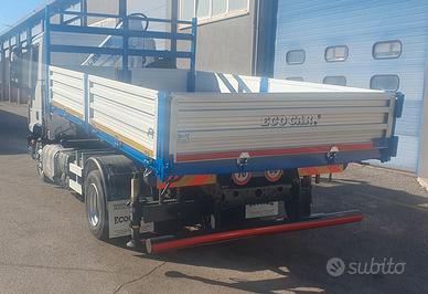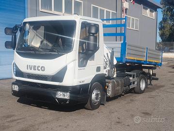 Iveco Eurocargo 75 E 16, anno di prima immatricolazione 2016, motore 4 cilindri 160 cv. EURO 6, cambio meccanico 6 marce, cabina bianca, veicolo controllato totale di meccanica e carrozzeria, Km 187.000 circa, passo 3.330, vetri e specchi elettrici, sospensioni meccaniche, allestito con GRU BONFIGLIOLI P 5000 L 4SI, NUOVA, 4 sfili idraulici, dispositivo antiribaltamento, piedi stabilizzatori posteriori a discesa idraulica, cassone ribaltabile trilaterale NUOVO mis. mm. 4.000 per 2.400 x h 500, sponde in alluminio TR5, doppia apertura posteriore, para cabina a doghe, cassetta portatelo luci ingombro laterali, cicalino retromarcia. Portata netta Q.li 16