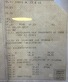 IVECO EUROCARGO 75E15 7.5 tonnellate ———Soloricambi —— Motore 3920 110kw F4AE0481C Cambio 5 marce Meccanica Carrozzeria Cassone lungo 610cm alto 250cm Largo 250cm sponda idraulica