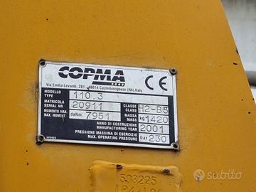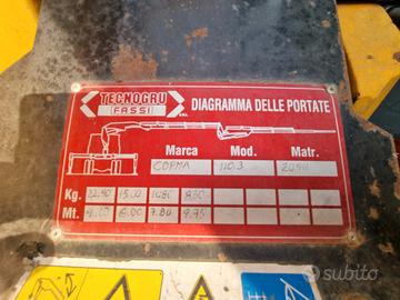 Gru dietro cabina Copma 110.3 con n. 3 sfili idraulici anno 2001 con verifica ventennale gia eseguita e valida fino al 13.09.2028 completa di radiocomando nuovo.