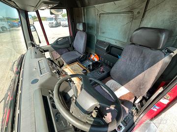 Marca: IVECO Modello: EUROTECH 260E27 Anno: 2000 Portata KG 15240 Chilometri: 796456 Allestimento: Cassone fisso + Gru dietro la cabina Dimensione allestimento: 6,70 mt. in lunghezza Gru: FASSI F130 AC 22 Sbraccio idraulico orizzontale: 6,30 mt. Portata a 2,25 mt.: 5755 Kg Cabina: 2 posti corta N° Assi: 3 Cambio: Manuale