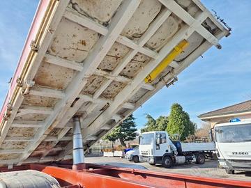 EURO 3 - Passo 4200 - Ribaltabile trilaterale m 6,00x2,50 - Gru anno 2000 PM 16524/4 Sfili idraulici, 4 stabilizzatori e Radiocomando - Cambio manuale - Cabina corta - Sospensioni posteriori pneumatiche - Bloccaggio differenziale - Terzo asse sterzante e sollevabile - Traino - Peso complessivo Q.li 260,00 - Portata utile Q.li 124,40.