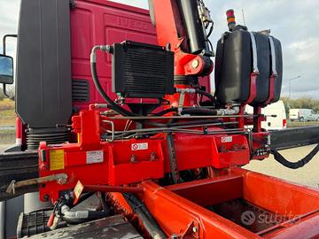Allestito con cassone RIBALTABILE trilaterale NUOVO e GRU FASSI F150 a 5 SFILI IDRAULICI, RADIOCOMANDO e doppio stabilizzatore. Estensione massima del braccio di mt 20,85 con Kg 260 di portata.