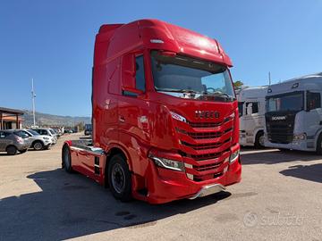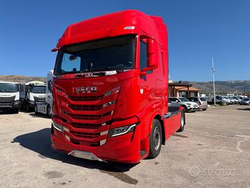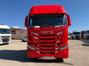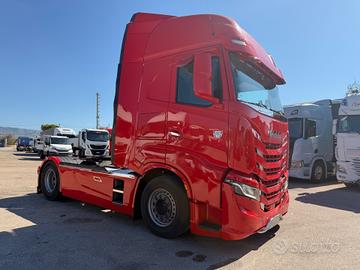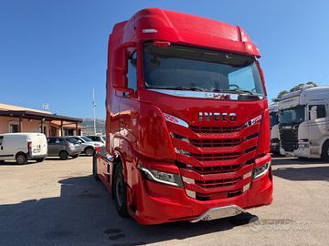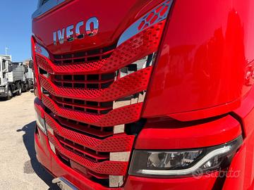 Iveco S-Way 530, anno 2022, euro 6, cambio automatico con retarder, km 94000, total red, rifiniture in acciaio, porta targa bull bar in acciaio, doppio serbatoio carburante, munito di impianto idraulico per ribaltamento semirimorchio (a doppio tubo), clima da fermo, fanali anteriori e posteriori a led....