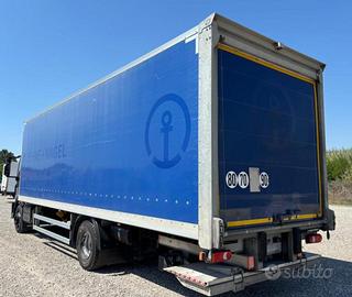 KM 350.759. Dati veicolo: NORMATIVA INQUINAMENTO EURO 6, MOTORE TECTOR 7 CON SCR - 6728 CC - 6 CILINDRI COMMON RAIL - 250 CV, CAMBIO ZF ASTRONIC 6AS 800 TO - 6 MARCE + RM AUTOMATICO E SEQUENZIALE, CLIMATIZZATORE, SOSPENSIONI POSTERIORI PNEUMATICHE, ABS (SISTEMA ANTIBLOCCAGGIO + CONTROLLO ELETTRONICO DELLA STABILITA'), AEBS, CRUISE CONTROL , HILL, HOLDER, SISTEMA RILEVAZIONE CORSIA LDWS, FRENO MOTORE CON FUNZIONE DI RALLENTATORE, IMMOBILIZER, SERBATOIO UREA RISCALDATO, IDROGUIDA, CABINA CORTA MLC-MY 2015 TETTO BASSO, ALZA CRISTALLI ELETTRICI, CHIUSURA CENTRALIZZATA, LUCI DIURNE DRL A LED, SEDILE AUTISTA PNEUMATICO, SPECCHI RETROVISORI ELETTRICI E RISCALDATI, SPOILER. Dati allestimento: FURGONE IN PLYWOOD Dimensioni utili interne circa 8,50 * 2,48 H 2,40 + SPONDA MONTACARICHI RETRATTILE Marca: DHOLLANDIA Portata utile di sollevamento 15 Q.li O POSSIBILE CABINATO PER ALLESTIMENTI VARI CON EVENTUALE MODIFICA DEL PASSO. Per info, prova e visione: Simone - info@sitoweb