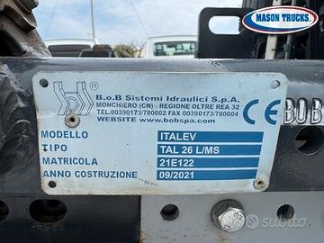 Impianto scarrabile telescopico articolato BOB mod. TAL 26 L/MS, 26 ton,sfilo + brandeggio, rullo verticale, attacchi idraulici gru, può agganciare casse da min 5.20mt a max 7.20mt, campana di traino.