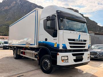 Iveco Stralis 180E42Euro 5 -25B- Anno 07/2011 213.670 Km Motore 10.308 CC Attrezzaturaintercambiabile sponda retrattile attacco biga Cambio automatico Portata 10.160 Kg Passo 5700 Pedana Dhollandia 2000Kg Retrattile Pneumatica integrale Freno elettrico Retarder Intarder Bloccaggiodifferenziale Kit catene da neveelettrico Clima Navi Frigo Webasto 1 Letto singolo Frigo Chiusura centralizzata Vetri elettrici Gommato nuovo Misure cassone:Lunghezza 7,65mt x Altezza 2,53mt x Larghezza 2,48mt Tagliandato Iveco Numero di riferimento: 25B Richiesta: €26.500,00 Immatricolazione acarico del cliente. Possibilità difinanziamento. Vieni a trovarci inViale Regione Siciliana 5703 sud/est a Palermo (direzione Villabate) Visita il nostro sitoweb www.mctrucknoleggi.it Contattaci al388.8949943 su whatsapp Contattaci al: / MC Truck Group srl