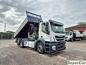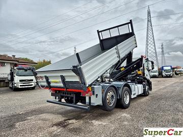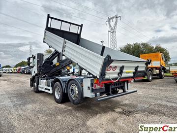 EURO 6 - Passo 3800 - Ribaltabile trilaterale nuovo con sponda posteriore a libro m 5,30x2,55 - Gru nuova Bonfiglioli P 15000L/4 Sfili idraulici con Radiocomando nuovo - Cambio manuale - Sospensioni pneumatiche - Terzo asse sterzante e sollevabile - Peso complessivo 260,00 - Portata utile Q.li 137,00.