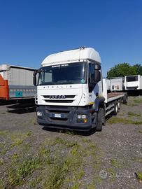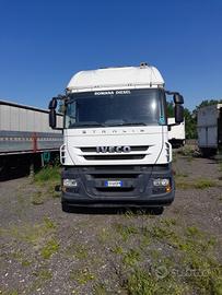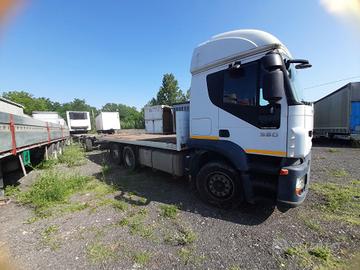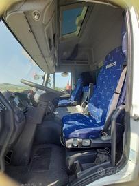 Motrice usata in eccellenti condizioni Iveco Stralis 260S36 AT, anno di prima immatricolazione 2011, km 134.498, passo 3.800 mm, cabina AT-N, motore Cursor 8 F2BE3681 euro 5, 265 kW - 360 HP, cambio automatico ZF Astronic 12AS1930TD, sospensioni miste (meccaniche avantreno - pneumatiche retrotreno), para incastro posteriore, barra stabilizzatrice, specchi retrovisori riscaldabili, condizionatore aria manuale, autoradio controllo remoto, botola su padiglione a comando elettrico, serbatoio aria alluminio, serbatoio gasolio alluminio 800 litri, riscaldamento supplementare cabina, sedile autista pneumatico con bracciolo, pneumatici 385/65, gancio Orlandi. Allestimento Tercam pianale fisso trasporto container marittimi 8 piedi, 8 piedi e 6 pollici, 10 piedi e 20 piedi, rimorchio Schmitz Cargobull W18 trasporto container marittimi 10 piedi e 20 piedi, pneumatici 385/65 R22.5. S.E.&.O. TELEFONO Mostra numero N.B. SOLO CONTATTI TELEFONICI - NON INVIARE MESSAGGI