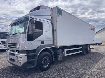 IVECO STRALIS 310 3 ASSI CON TERZO ASSE STERZANTE ANNO 2006 TACHIGRAFO A DISCO CAMBIO AUTOMATICO CELLA CON GRUPPO FRIGO CARRIER SUPRA 950 LUNGHEZZA CELLA 9.60 MT ATP 05-2029 SPONDA RETRATTILE