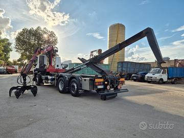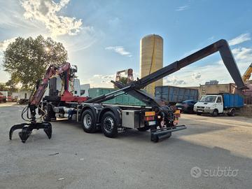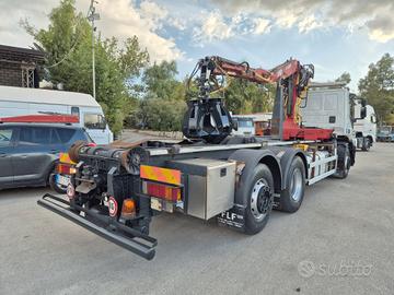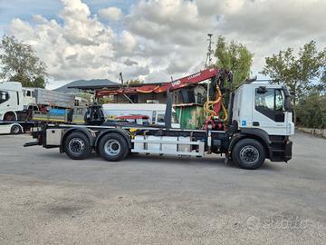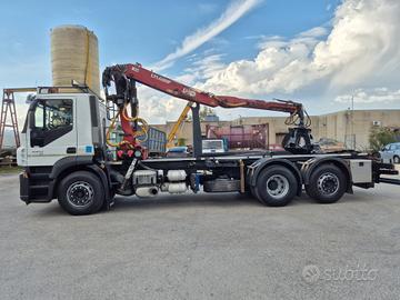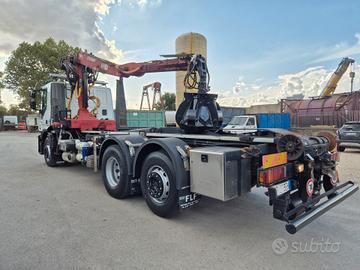 Iveco Stralis 420 anno 2008 euro 5 km 369.000 6x2 3 asse intelligente cambio ZF aria condizionata con impianto scarrabile TAM da 25 ton pinza per aggancio per cassa rullo veritcale posteriore estraibile in adr gru LIV L11.68NP con polipo, anno 2008, portata 3.300 kg perfette condizioni gancio per rimorchio attacchi idraulici posteriori perfette condizioni