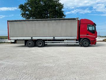 Iveco Stralis 260 430, anno 2006, pneumatico avanti e dietro, terzo asse intelligente, pneumatici ribassati /70, cambio zf, allestimento con centina alza abbassa e tetto copri scopri, porte posteriori lunghezza mt. 9,60, ottimo stato, bellissimo.