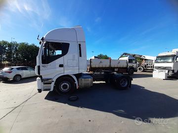 IVECO STRALIS 440S48 Euro 6 trattore 4X2 per semirimorchio usato Iveco Stralis 440S48, passo 3.800 mm, sospensioni miste (meccaniche/pneumatiche), cabina AS-NT, motore Cursor 13 F3GFE611 Euro 6, cambio ZF 12AS 2330 TD con Intarder, serbatoi aria in alluminio, volante in pelle, TPMS, navigatore satellitare Iveco, lava proiettori ad alta pressione, spoiler su tetto, specchi retrovisori elettrici e riscaldati, Iveco connect, sedile autista confort in tessuto, rispostiglio sottopavimento, serbatoio urea 135 litri, proiettori addizionali, sedile passeggero pneumatico, riscaldamento supplementare cabina, misurazione carichi sugli assi, chiusura porte centralizzata con telecomando, 2 lettini con inferiore high confort, cruise control, hill holder, maxi frigo e box termico, pneumatici 315/80 R22.5 S.E.&.O. Telefono Mostra numero N.B. SOLO CONTATTI TELEFONICI - NON INVIARE MESSAGGI