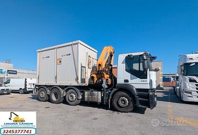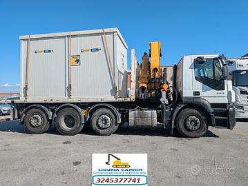 Motrice IVECO STRALIS 450 anno 2011 Euro 54 assi 8x2 con pianale fisso con sponde complete. Cambio manuale ZF , clima Dotata di GRU EFFER 370.11/4S CON RADIOCOMANDO , CE e revisione fatta fino al 24/04/2029.Altezza massima 12.5mPortata 67 quintaliPortata apertura massima 27 quintali Secondo e terzo asse sollevabili sterzanti intillegentiLunghezza totale 8.95 mPortata 32000kgPortata utile netta 18500kgKm 545000 Dotata di campana per rimorchio, omologata a libretto.Revisione regolare DISPONIBILE A LIVORNO Liguria Camion-GenovaCell anche WhatsApp per video e fotoFacebook: Liguria CamionValutiamo permuta o ritiro Minipala/ Pala gommata / Miniescavatore o Escavatore di qualsiasi peso . Marca Hitachi, Fiat Hitachi, Fiat Kobelco, Caterpillar, Bobcat, Komatsu, Volvo, Hyundai, Doosan, Yanmar, Neuson, New Holland, Jcb, Ihi, Vio, tacheuchi, e camion motrice e mezzo d'opera 3 assi 6x4 o 4 assi 8x4 , Iveco , Mercedes , Volvo , Daf, Man , Rrenaul t, Scania , Cifa , betoniera e pompa, Schwing, Putzmeister,