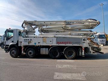 MotriceIveco Stralis 450 8x4 cv 450 euro 6 Cambio manualeZF Clima,radio Gomme 1°30% 2° 30% 3° 30% 4° 30% Km. 54281 Primaimmatricolazione 31-01-2019 Modellopompa PU1207 Modellobraccio di distribuz. K36C Ore dilavoro 1723 Capacitàpompa di alimentazione 120 m³/h Pressionedi mandata 70 bar Tubo dimandata ø 125 mm Altezzadi scavo 35.5 m Max.Sbraccio orizzontale 31.1 m