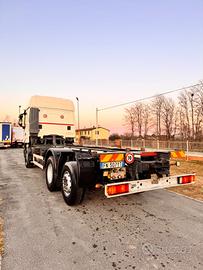 Gancio di traino, riscaldamento autonomo, finestrini elettrici, specchi elettrici, sedili riscaldati, radio, lettore CD, Bluetooth, ABS, ESP, blocco differenziale, sospensioni pneumatiche, terzo asse sterzante, telaio per cassembile con twist-lock.