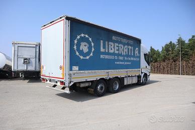 anno 2010, euro 5, motrice 3 assi centinata, cambio automatico con retarder, gomme 315/70, passo 4500, 3° asse intelligente, full pneumatico, sponde da 60 cm, porte posteriori,alzaabbassa e copriscopri, fondo in legno, lunghezza esterna 7,40m, altezza 2,90m, doppia branda e frigo in cabina. Revisionato