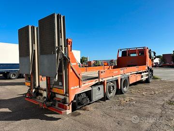 Anno 2016 - passo 5100 - pianale con rampe restringibili idraulicamente e verricello - misure interne: lunghezza mt 8.30 larghezza mt 2.48 - parte inclinata mt 1.50 rampe divise da mt 2.20+1.70 - cambio manuale ZF16 - aria condizionata - 3°asse sterzante -portata complessiva q.li 260 utile q.li 144.76 - km 380000.